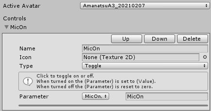 この状態でMicOnのパラメーターが「**True**(チェックが入っている状態)」になると