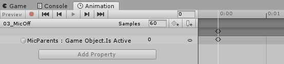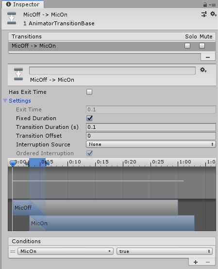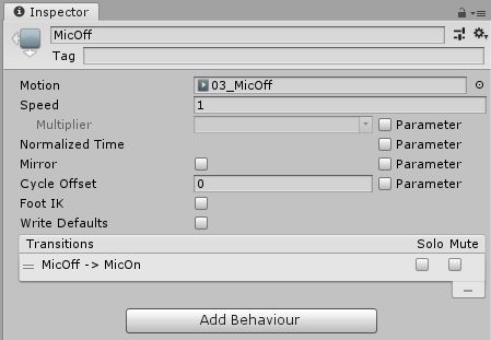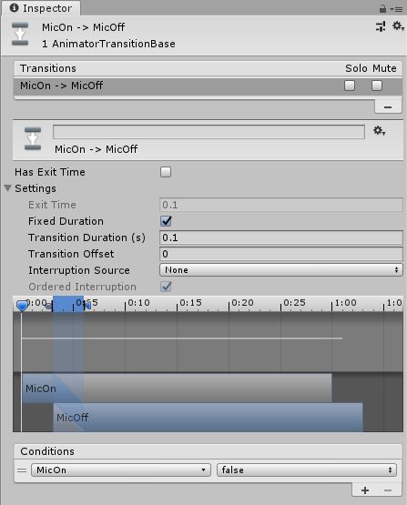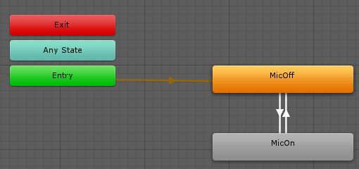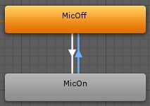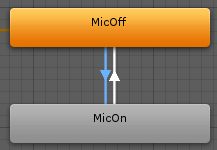 ここまでの設定の簡単な説明をすると、一番最初アニメーターが起動すると**MicOffに状態が遷移**して**待機**しますにゃ。このとき**マイクは非表示**になりますにゃ?