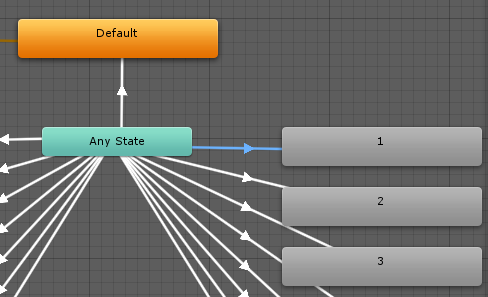 パラメーターの値が変わると、レイヤー内の**トランジッション(白い線)で設定されている**状態遷移の条件にあっているか判定されて、**条件を満たしていれば状態が遷移します**にゃ!