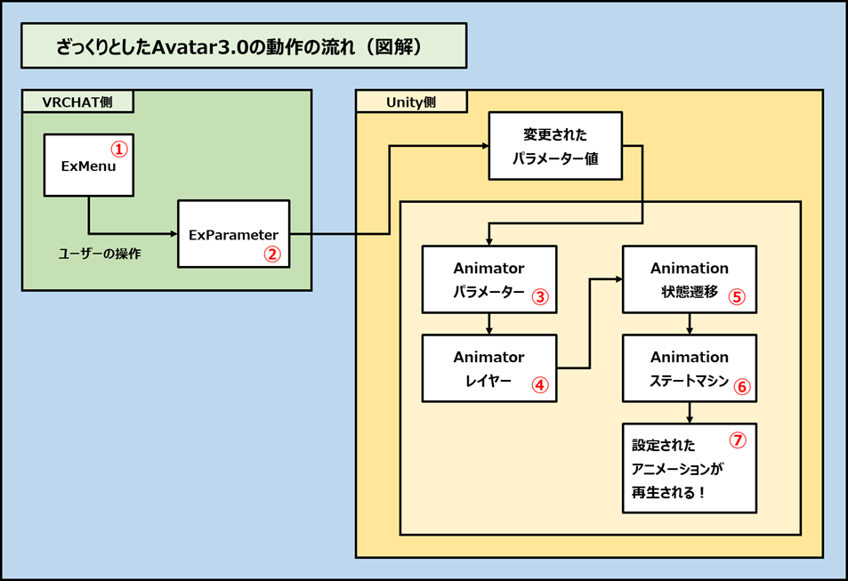 このような流れで**VRChatからの命令をアバター側で処理**していますにゃ!