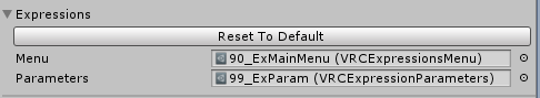 ExメニューとExパラメーターの接続はUnity上でアバターのコンポーネント