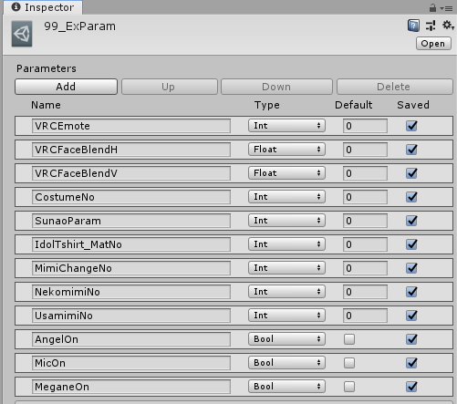 ExParameterは自分で好きにアレンジできますが、このパラメーターは次で説明するAnimationコントローラーの中のパラメーターと**大文字・小文字も含めて一致していないとだめ**にゃ!